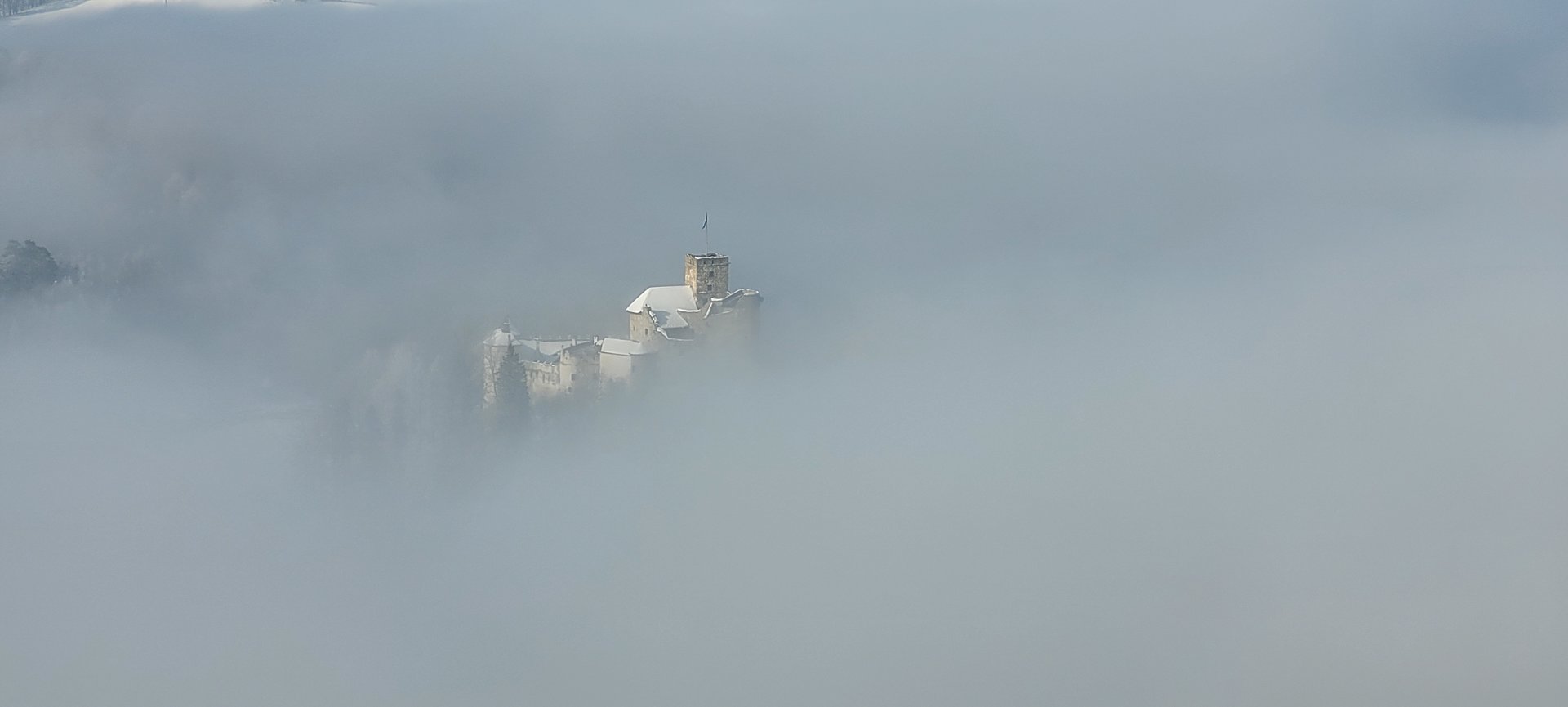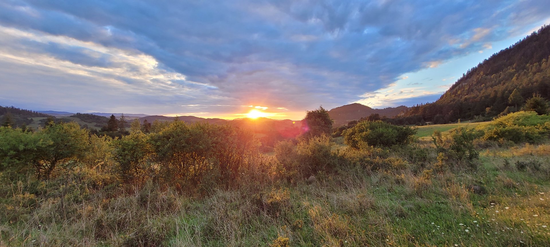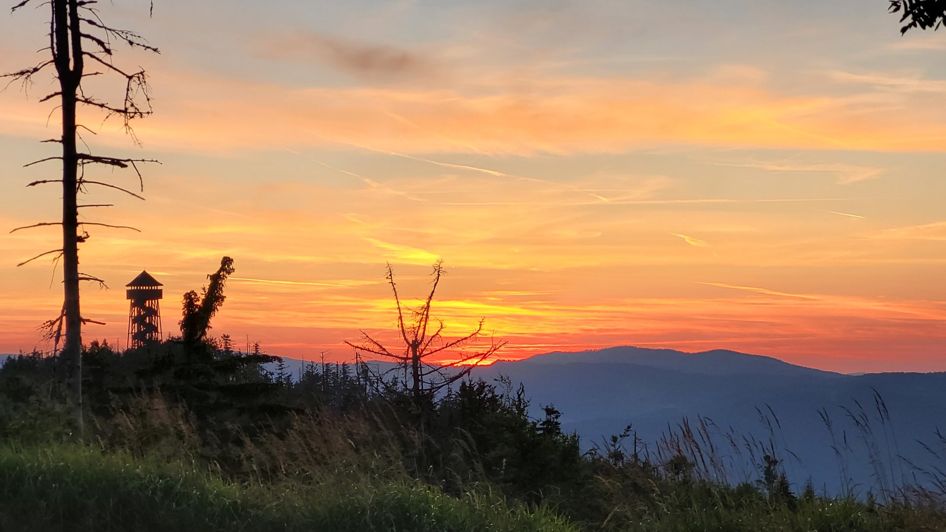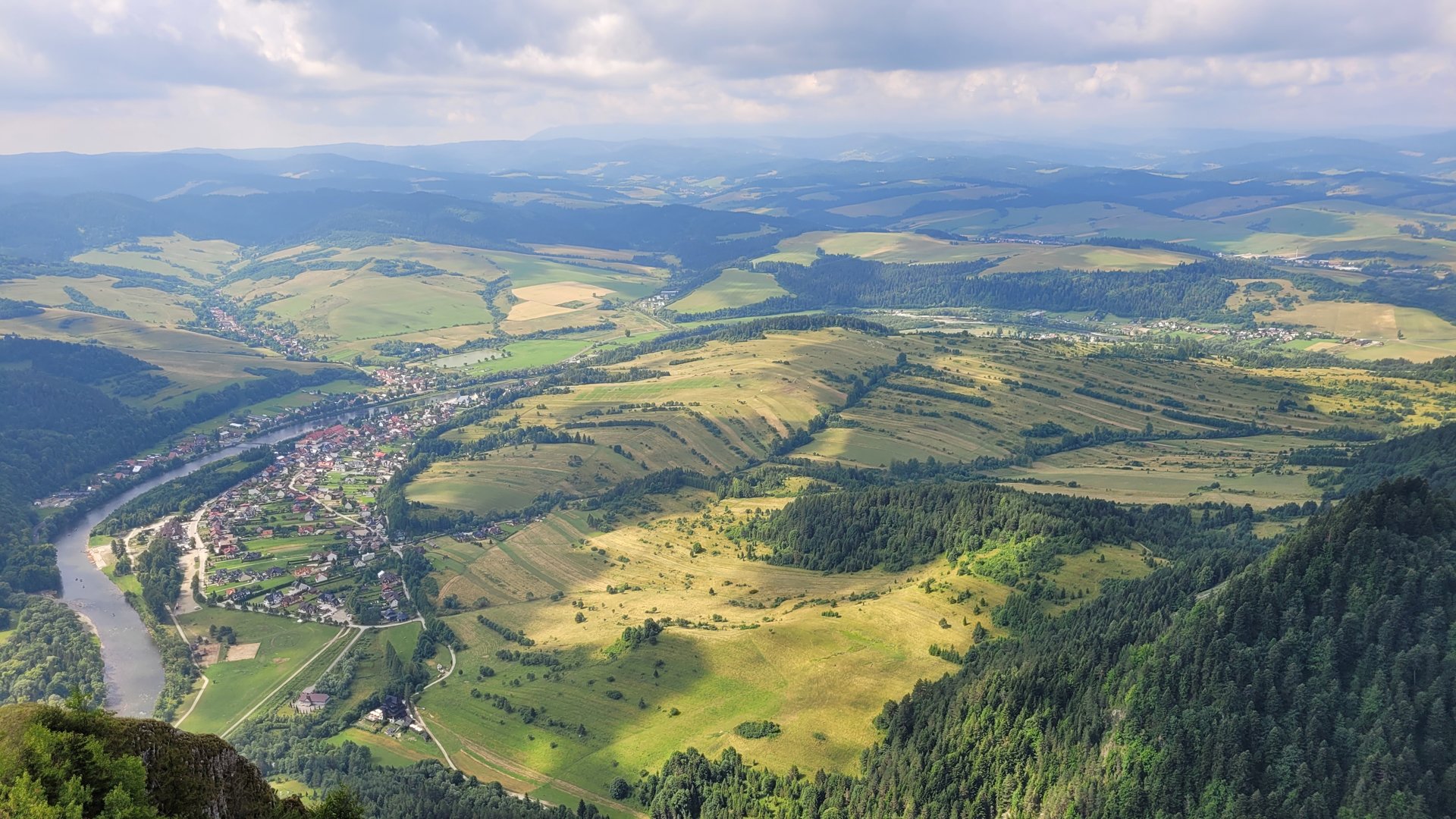 Pokój z łazienką oraz balkonem z widokiem na góry i lasy.